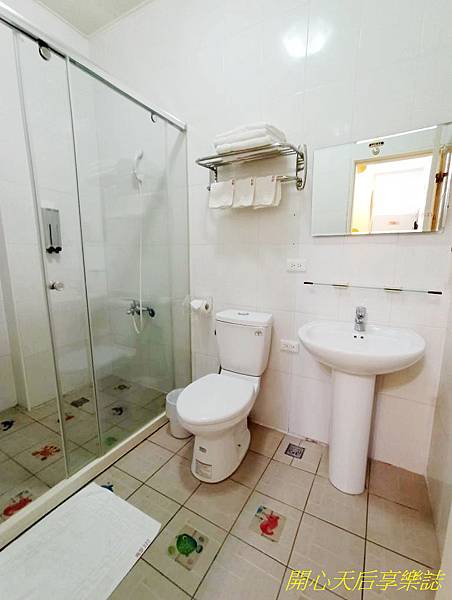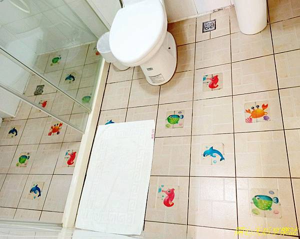 這間的浴室更是富有童趣~地磚上貼有各式各樣可愛的海洋生物,會讓小小孩覺得有趣