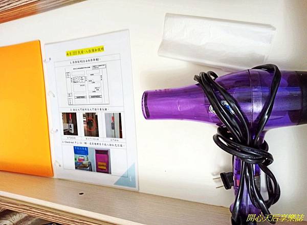 化妝桌抽屜內放有入住說明本、備用垃圾袋、吹風機