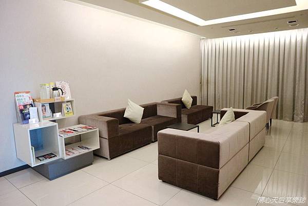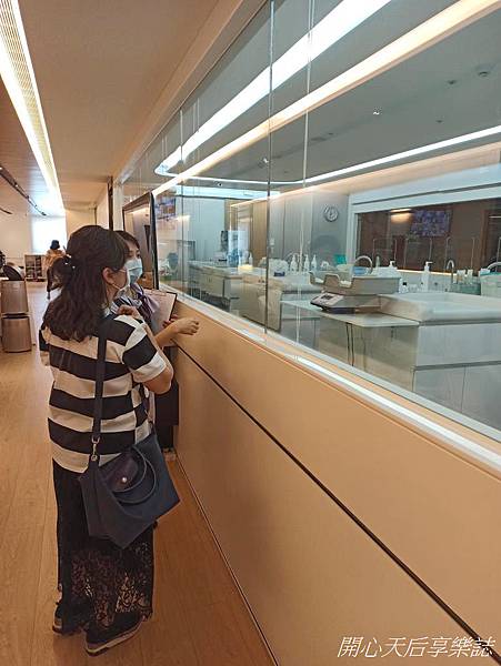 『國泰台北會館產後護理之家』位在大樓內的7、8樓,我來到7樓,在門口按門鈴與現場服務人員通話後才得以進入館內,因應疫情,須先以酒精消毒雙手、量額溫、全程配戴口罩,才能入館