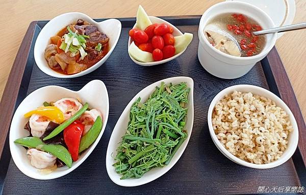 參觀完環境後,這次有另一個任務是擔任月子餐試吃,趕緊來品嚐由營養師、中醫師、廚師「黃金三角」團隊,結合營養學及傳統燉補概念,打造的健康月子餐,嚴選各項食材、中藥材,於館內廚房現煮餐點,餐點講求適量蛋白質、高纖維、低鹽、低油,並提供每日中藥養生茶飲用