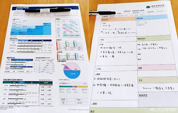 這是國泰產後護理之家獨有的專業項目,是入住館內的媽媽才 有的服務,這次特別額外安排,主要也是透過我這已有生產經驗的媽媽能相互做意見交流,營養師透過我經由儀器測量出來的身體組成數據及詢問我平日三餐的飲食、運動方式,給予我個人專屬飲食菜單建議,幫助我如何控制目前已過胖的體重,好讓我在日後孕期中能健康的孕育腹中胎兒及產後迅速恢復標準身材