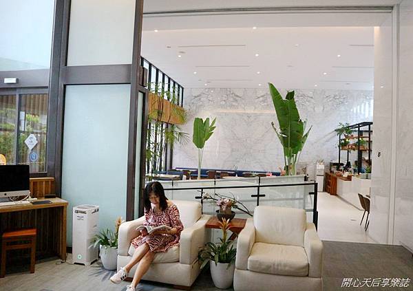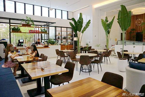 一樓網美咖啡廳『hecho做咖啡』,開闊的廳內,擺放蕉葉盆栽加上柚木桌椅,很有渡假fu~