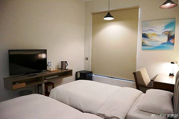 這次入住「花漾雙人房(街景)」,房間不大,卻很雅致安靜,乾淨舒適,設備俱全,有WIFI、42吋平面電視、MOD電視頻道、小冰箱
