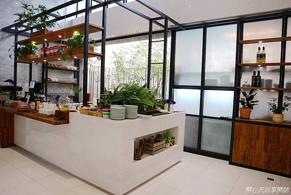 工業風吧台,讓咖啡廳空間具有穿透性,看得到咖啡廳後院的綠樹植栽,是城市難得的綠意景觀!