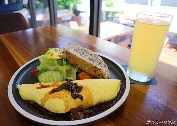 我點了<法式蕈菇松露醬起司歐姆蛋+蜂蜜檸檬>,起司歐姆蛋入口滿是濃厚起司奶香+鹹香的蕈菇、松露醬,配上鬆軟的歐式麵包、清爽的新鮮蔬菜沙拉及現調的蜂蜜檸檬,美味爽口,全套吃完,飽足又滿足!