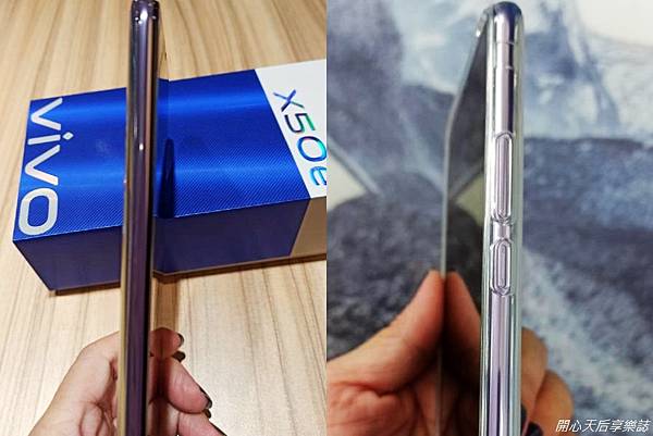 套上空壓殼,仍然看得出來是淺紫色的邊框,蠻優雅的!