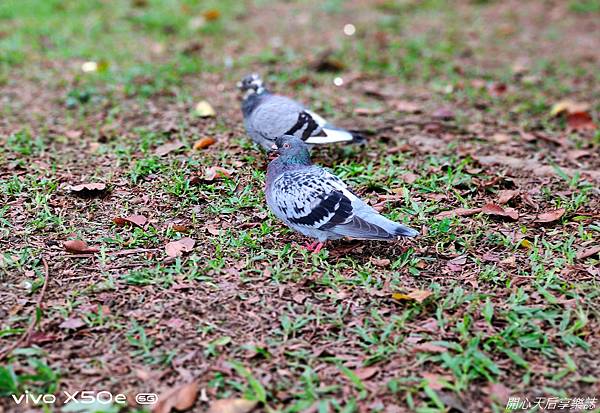 蹲下來拍鴿子,轉換到虛化模式,拍出來有背景虛化(景深)的效果,鴿子顯得更清晰,用桌機看照片,連鴿子的小眼睛都看得很清楚呢