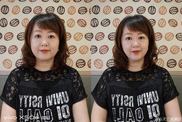 明顯看出『vivo X50e』自拍照較清楚明亮,且美肌效果較優!