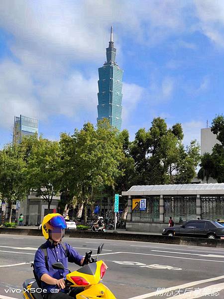 這張純屬誤拍,本來要拍101大樓的,但忽然有騎士經過,沒想到『vivo X50e』快門太快,把行徑中的騎士也照進來了