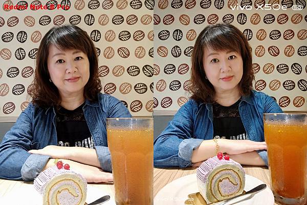 在咖啡廳自戀的自拍好幾張,都有開啟寫真模式,運用vivo獨家的演算法,讓我在不同背景,不同光線的環境下拍出寫真美照