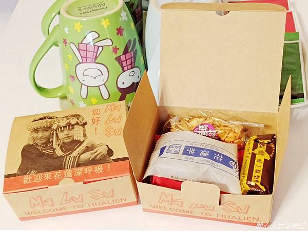 民宿主人待客很多禮,一進房間就看到她提早訂製的迎賓禮盒,盒內有數種花蓮名產點心,足感心耶!(照片僅供參考,以當日現場提供為準)