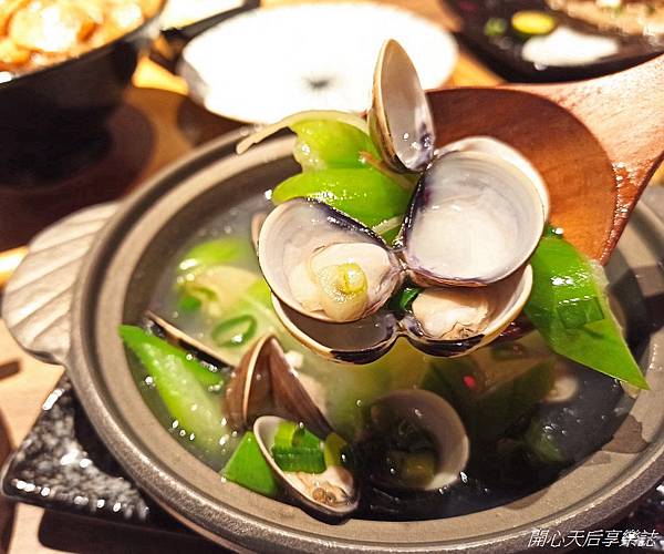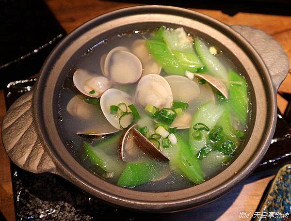 鍋物料理2選1<絲瓜蛤蜊>口味清淡,絲瓜自帶清甜,口感柔滑,加上蛤蜊的新鮮海味,是一道清爽的鍋物