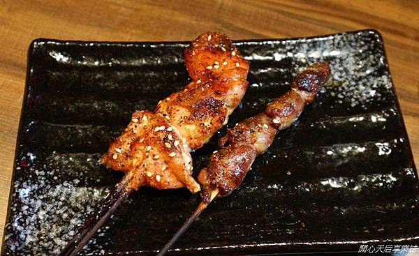 <炙燒雞腿串>$68,獨門燒烤醬汁刷上油潤多汁的雞腿肉,很夠味