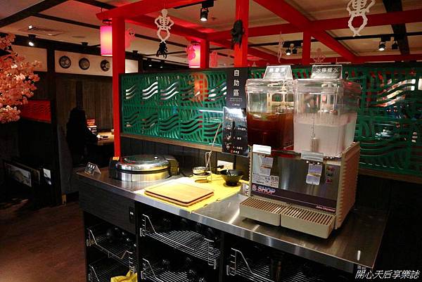 <自助區>提供免費、無限暢飲的檸檬水、麥茶、海帶味噌湯、新鮮蔥花