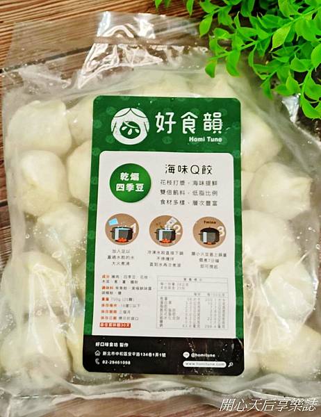『好食韻水餃』包裝簡約清楚,講求環保,沒有過多不必要的包裝;袋裝正面,標示商品相關資訊,並附煮水餃圖示,很詳細,不過我都用自己的方法煮