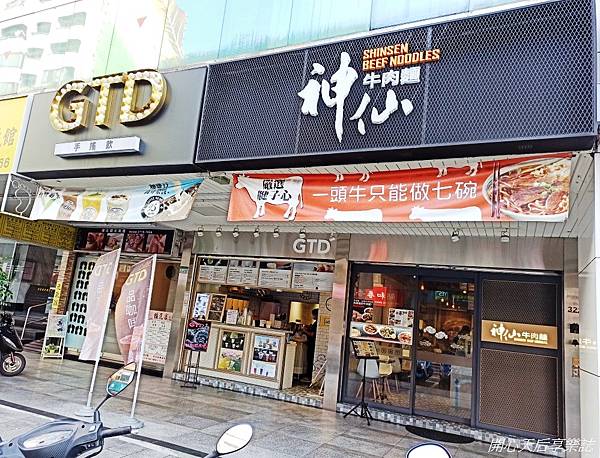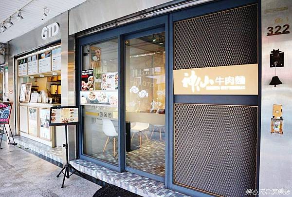 『神仙牛肉麵』外觀上看起像咖啡館,不像一般的牛肉麵店,隔壁『GTD手搖飲 Good Tea Day 』是姐妹店,吃牛肉麵搭配手搖飲超合拍!