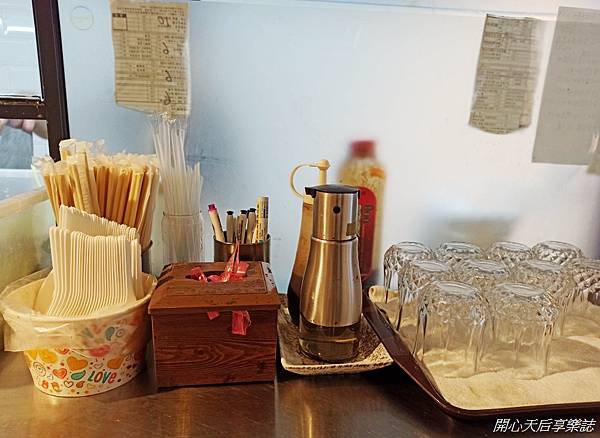 茶水區,客人可自行取用常溫水、烏醋/白醋、分食用小碗