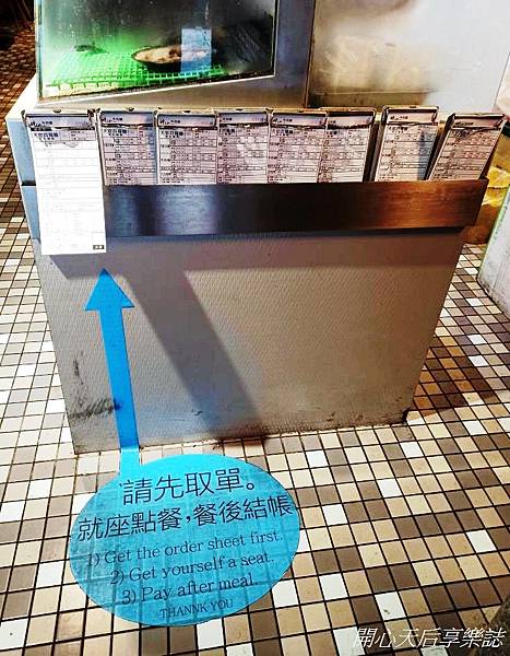 進門先看到地上的大箭頭,指引顧客先取菜單,找到座位後點餐,吃完再結帳