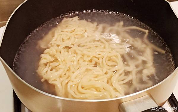 先將拉麵下鍋煮3~7分鐘(麵條為手工拉麵,建議煮3到4分鐘是最Q彈的),我煮3分鐘後就撈起來和川燙過的青菜放一旁備用