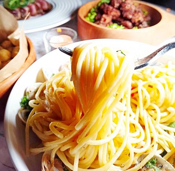 麵條口感彈Q,清淡白酒&海味中,帶些許辛香微辣的小刺激,很是爽口不膩