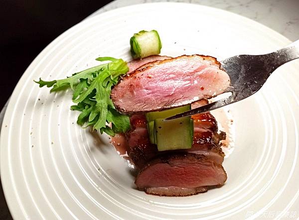 鴨胸肉柔嫩汁多,帶有淡淡迷迭香味,油潤美味,我一片接一片,不自覺地吃光了,回味無窮~