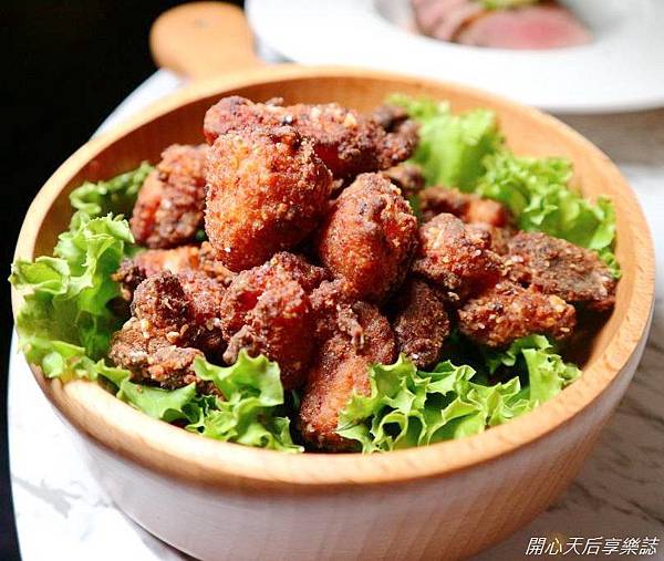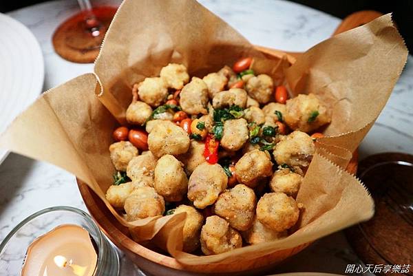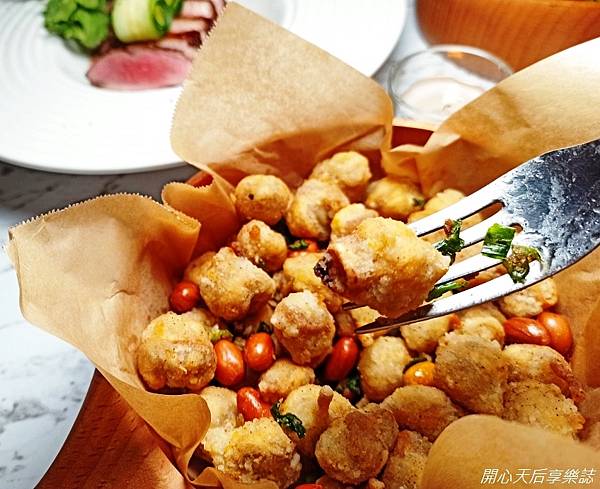前菜-腐乳炸雞球,口感酥脆,腐乳X胡椒,鹹香夠味,對我而言是重口味的鹹酥雞,也是必點的下酒菜!