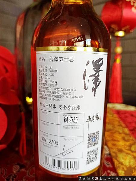 『虎尾釀-龍澤威士忌』瓶身背面有清楚的產品相關標示