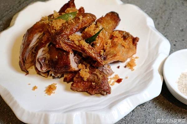 雖然我們吃不完全部的「雙人摘星宴」,卻貪心的加點莆田十最-脆皮蒜香雞$390(半隻),由於是現點現做,須等半小時左右,建議一開始點餐時就先點