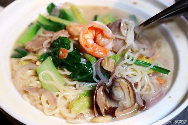 莆田滷麵以數小時文火慢燉,將豬大骨與雞肉精華完全融化成濃白鹵汁,加入蝦肉、蝦米、蛤蜊、肉片、青菜、香菇等10多種新鮮配料,口味豐富,喝起來鮮美無比
