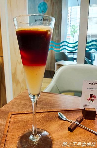 層次分明的杜鵑咖啡,攪拌後,再入口,香醇咖啡中帶有洛神酸味,沖淡了不少咖啡苦味,獨特的迷人風味,值得一喝!