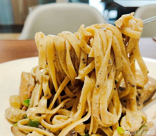 細扁麵口感柔軟彈韌,吸附了不少奶油及松露,很有法式風味