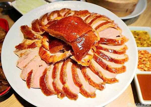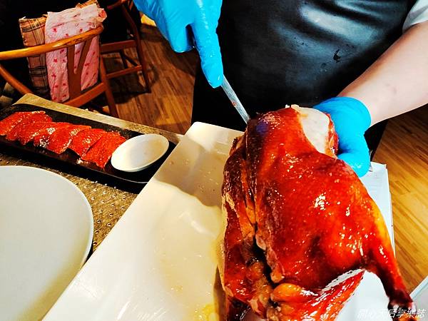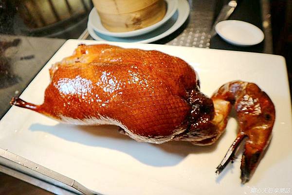 開胃小菜後,主角就來了~烤的油亮、呈現焦糖美色的誘人烤鴨,散發讓人垂涎的烤鴨香氣,讓我們不禁嚥了好幾口口水啊~