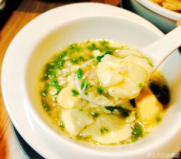 干貝絲翡翠炊蛋,口感柔滑,香甜的蛋香、海味,讓大人、小孩都忍不住一口接一口地送入口中