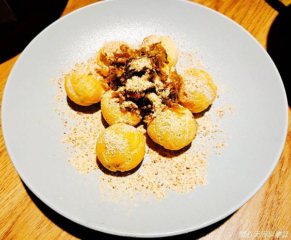酸菜芝麻流沙湯圓$180(大份8顆),一口咬下香酥的炸芝麻湯圓,口中立即感受到香濃的芝麻流沙,配上酸菜、花生粉,鹹香甜美,看似違合,卻是獨特的絶妙鹹甜好滋味,湯圓控必點!