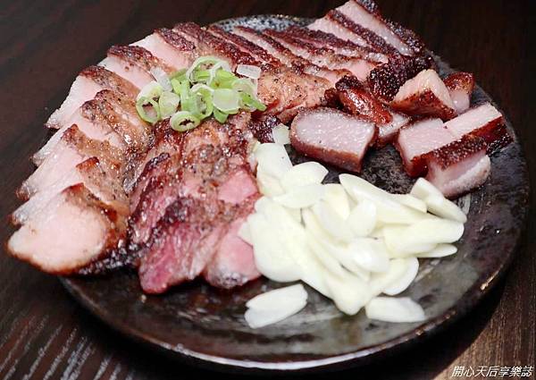 鹹豬肉$180,份量不少,表面油亮誘人,肥美多汁,很入味,卻不重鹹,搭配新鮮蔥花/蒜片,吃起來辛香、甜口