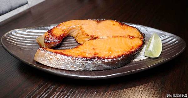 鮭魚幽庵燒$350,好厚的鮭魚,口感厚嫩,肉質甜美,毫無腥味,滴上檸檬,更鮮美,鹹香好味,甘美極了!