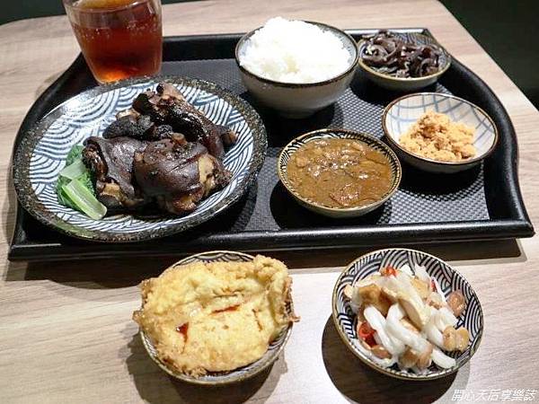 凍頂烏龍豬腳套餐附有焦糖可樂滷肉汁、肉鬆、涼拌木耳