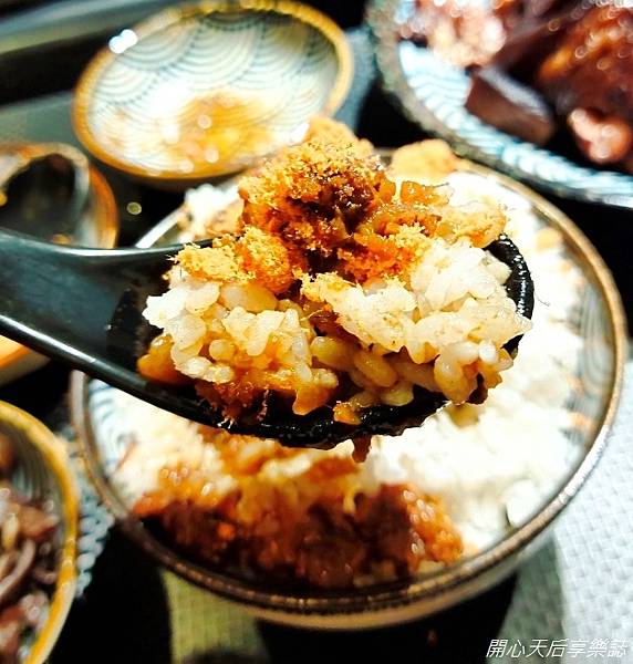 滷肉飯口感油潤,咀嚼時滿口甜美不死鹹,油而不膩,果然比一般滷肉飯美味,讓我一口接一口地扒進嘴裏,盡情享受『滷肉控』滷肉飯多層次口味及口感的獨特美味