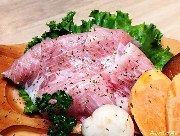 盤克夏豬梅花屬於上肩胛肉,油脂分布均勻,有筋有肉,吃起來口感Q嫩清甜,多汁不柴,香甜滿口,美味無比!