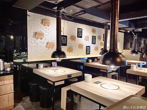 『燒酒・烤烤豬』裝潢走時尚工業風,空間寬敞舒適,沒有一般燒肉店會有的燒烤油煙味,午餐時間吃完再回去上班也可以~