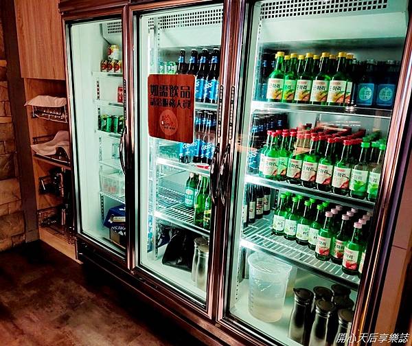 飲料櫃,以韓國品牌的汽水、啤酒、燒酒居多,也有台啤 (禁止酒駕 未滿18歲禁止飲酒)