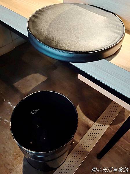 別緻的鐵桶造型座椅,掀開椅墊,就可以放包包或外套,好方便