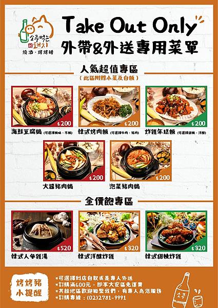 『燒酒・烤烤豬』外帶&外送專用菜單,另外推出限定的新菜色:韓式炸醬麵、韓式涼拌冷麵、起司辣炒年糕、韓式人參雞湯