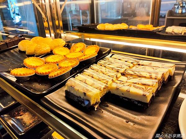 甜點櫃,有著不少可口的中西式甜點,像蛋糕、蛋塔、泡芙、少見的起司條蛋糕,讓甜點控的我們,很想先吃一輪!