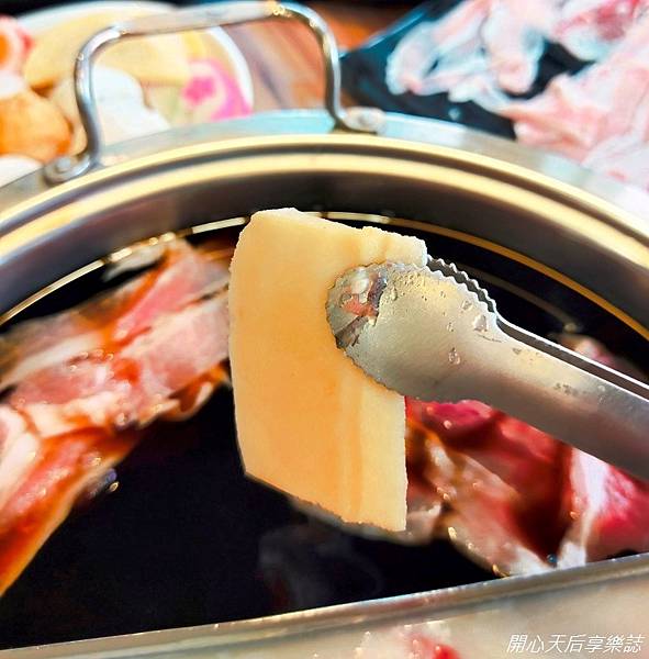 古早味的排骨酥,涮日式壽喜鍋湯底,口味像極了滷排骨酥,很夠味、唰嘴!