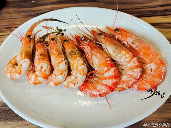 我們點了不少海鮮,都很新鮮,天使紅蝦、藍鑽蝦都不小隻,鮮蚵、大干貝也都很大顆