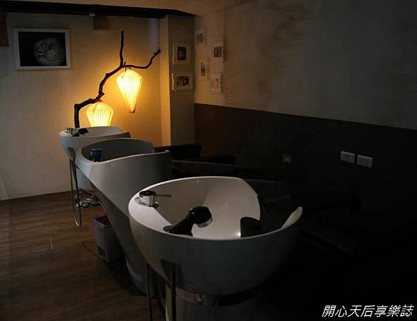 沖洗區,暈黃的燈籠+牆上掛畫,營造出頗有詩意的空間