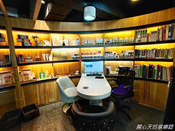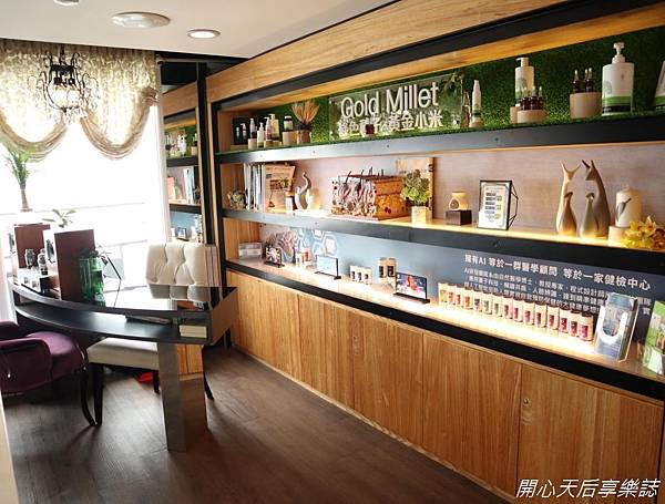 店內陳列『亞太頭皮管理』獨家研發的黃金小米系列髮品及眾多香氛品,空氣中瀰漫著讓人放鬆的精油香氣