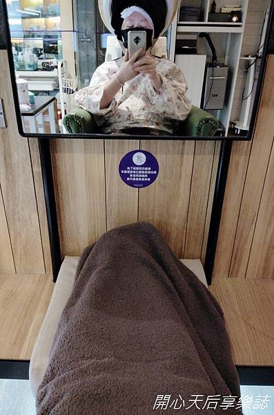 同時我還能伸長腿,悠哉地滑著手機,頭皮管理師幫我將大毛巾蓋在腿上,防止著涼,好貼心!