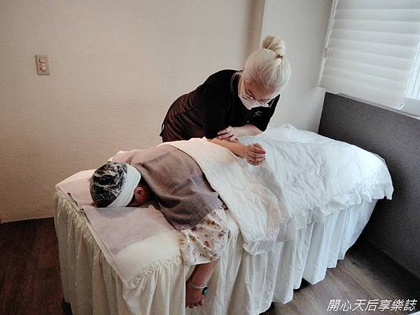 就來到SPA室,利用頭皮冷卻的時間,來做背部按摩